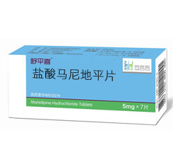 通用名稱:鹽酸馬尼地平片 商品名稱:舒平喜 英文名稱:Manidipine Hydrochloride Tablets 漢語拼音:Yansuan Manidiping Pian 活性成份:鹽酸馬尼地平 性狀:本品為白色至微黃色片 適應癥:高血壓病 規(guī)格:5mg、10mg 用法用量:成人每日早餐后口服1次,初始劑量5mg/次,并可逐漸增加為10-20mg/次,或遵醫(yī)囑。 質(zhì)量標準:國家食品藥品監(jiān)督管理局標準